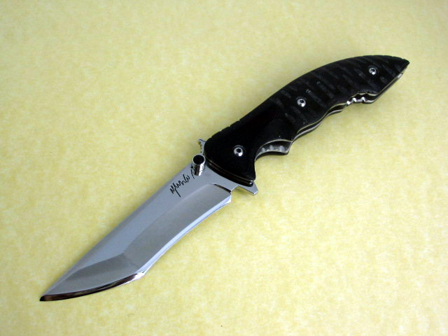 Description : This tactical is called " Pran ". It's mean the power. Tthe blade shape is American tanto but the edge is little curve and zero edge. It 's provide the good slashing. The tip is flat grinding for good penetration.   Description : This knife I designed for Randy, my master in AMOK! knife combat. The edge is chisel efge with hollow grinding.